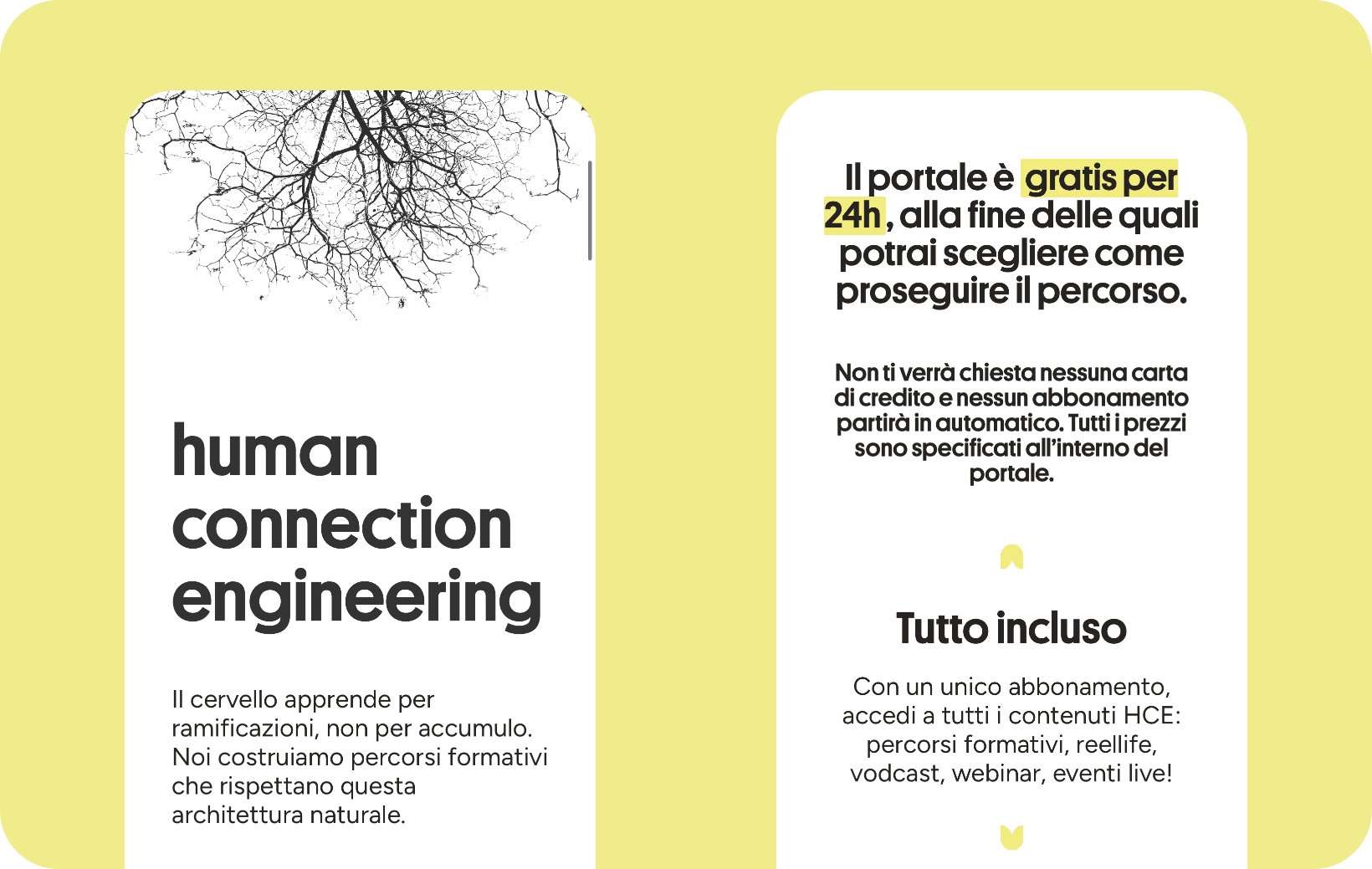 Il risultato finale è un ecosistema comunicativo completo, che integra strumenti digitali e materiali fisici in un linguaggio unificato, efficace e capace di valorizzare la proposta formativa di HCE sia online che dal vivo.