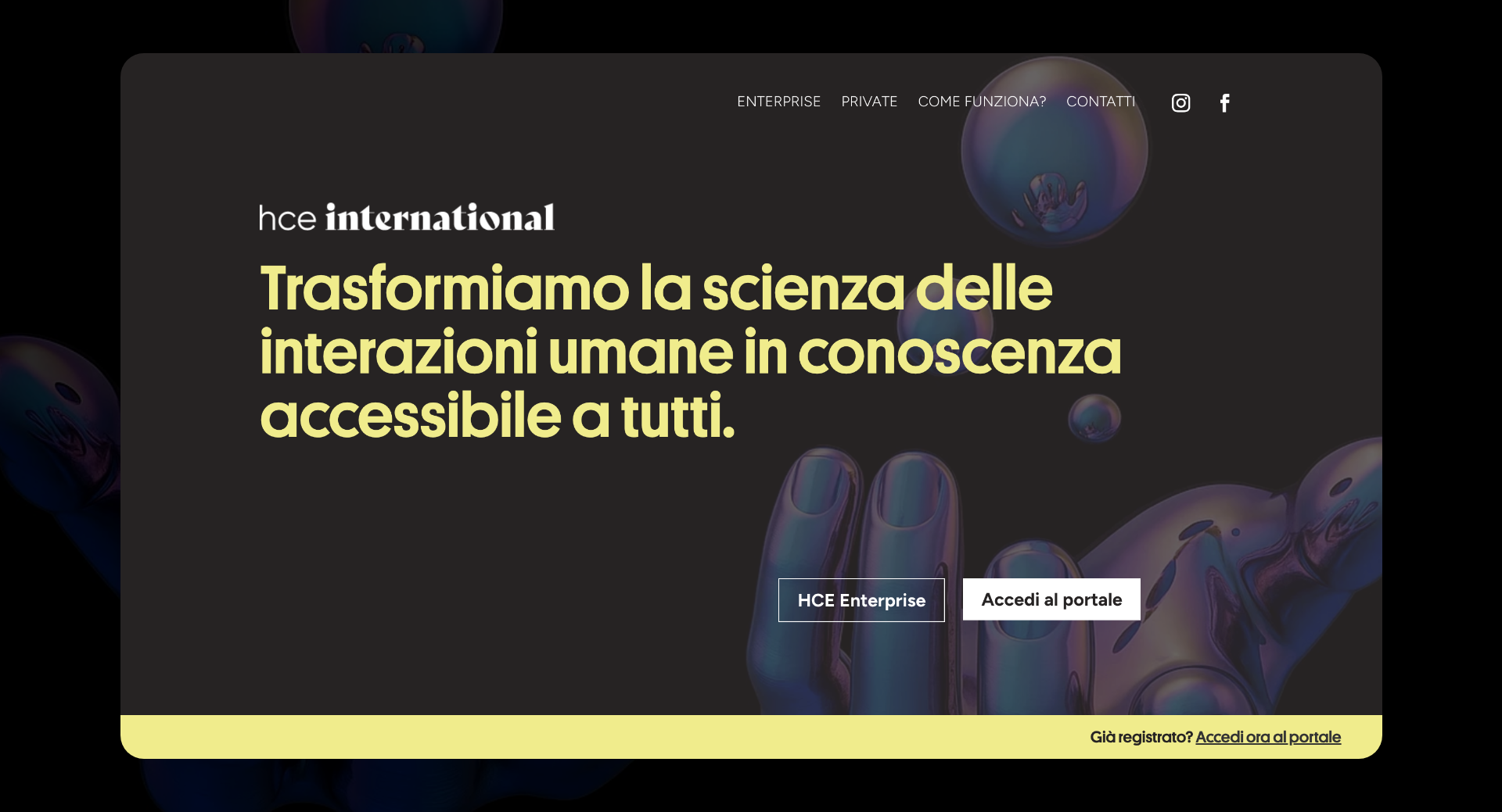 Abbiamo progettato un sito che unisce funzionalità e design contemporaneo, utilizzando una palette cromatica coerente con l’identità aziendale e font moderni per migliorare la leggibilità. Abbiamo volutamente scelto di utilizzare immagini generate con l’intelligenza artificiale in quanto contribuiscono a creare un’esperienza visiva unica, sottolineando il mood innovativo e scientifico di HCE.