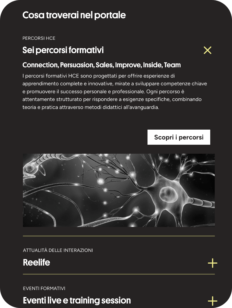 HCE International è una realtà innovativa con sede a Pavia, specializzata nello studio delle interazioni umane attraverso le neuroscienze cognitivo-comportamentali. Con un approccio scientifico e all’avanguardia, HCE offre percorsi formativi progettati per sviluppare competenze chiave e promuovere il successo personale e professionale.