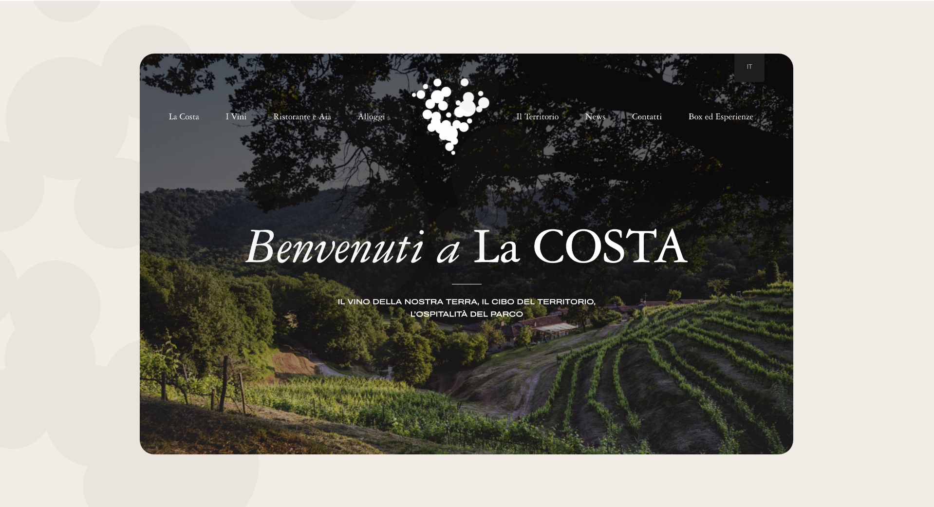 Il concetto del sito si basa sulla volontà di trasmettere l’atmosfera unica dell’Agriturismo La Costa, ispirandosi ai colori e alle sensazioni del parco all’alba. Le tonalità utilizzate nel design richiamano i colori unici del luogo avvolti dal velo di foschia e nebbia, creando un’esperienza visiva che immerge l’utente nella tranquillità e nella bellezza del territorio. Questa scelta cromatica non solo riflette l’identità visiva dell’agriturismo, ma contribuisce anche a migliorare il posizionamento sui motori di ricerca per chi cerca esperienze autentiche nella natura brianzola.