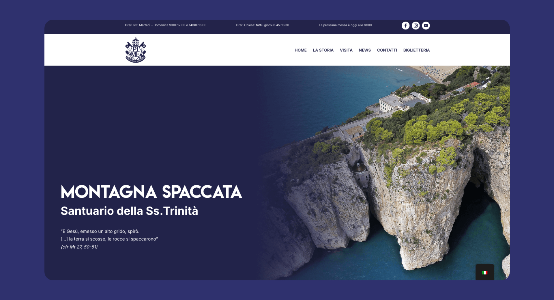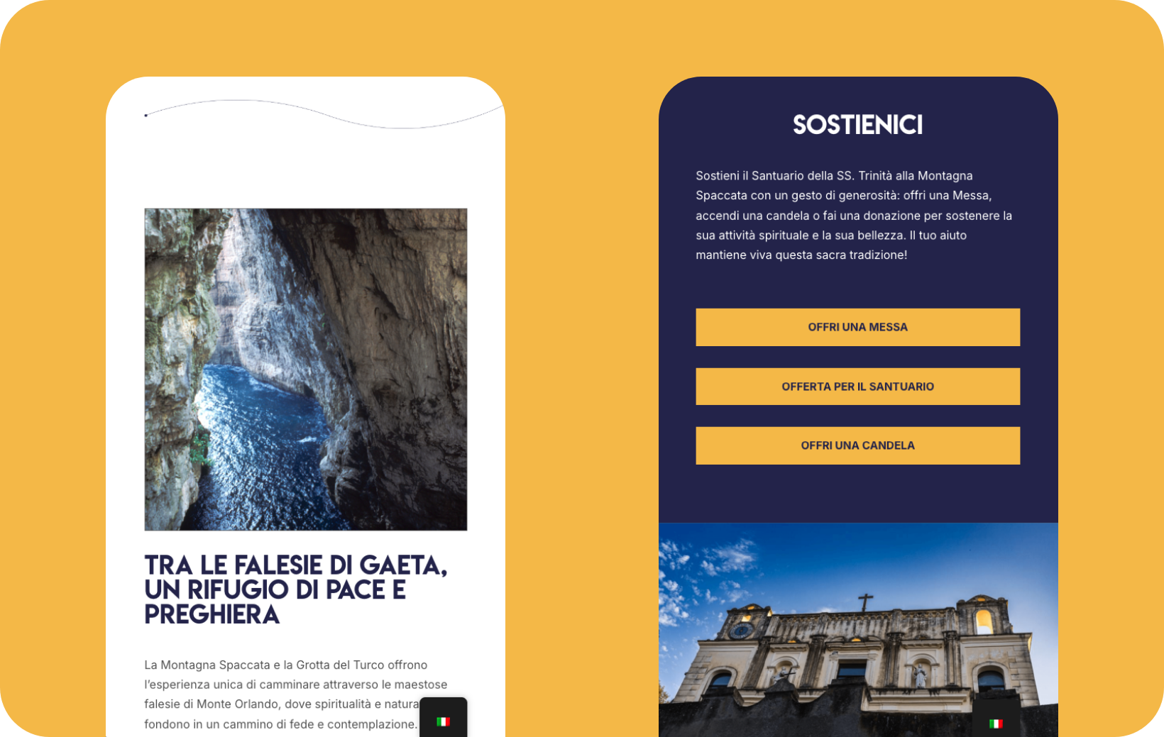 Abbiamo sviluppato un sito che unisce funzionalità e design contemporaneo, utilizzando una palette cromatica coerente con l’identità del santuario e font moderni per migliorare la leggibilità. Le immagini selezionate contribuiscono a creare un’esperienza visiva coinvolgente, sottolineando il valore storico e spirituale del luogo.