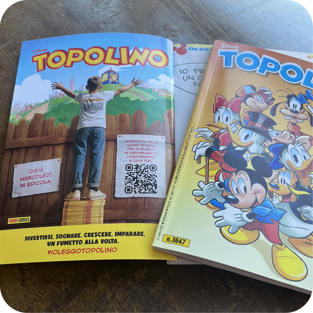 Il progetto nasce dalla collaborazione con Theoria per la realizzazione di un ADV destinato alla seconda di copertina del fumetto Topolino, con diffusione anche sulla rivista Gente. L’obiettivo della campagna era promuovere l’abbonamento al celebre fumetto in modo creativo e visivamente impattante, restando però fedele all’identità storica e iconica del brand Panini.