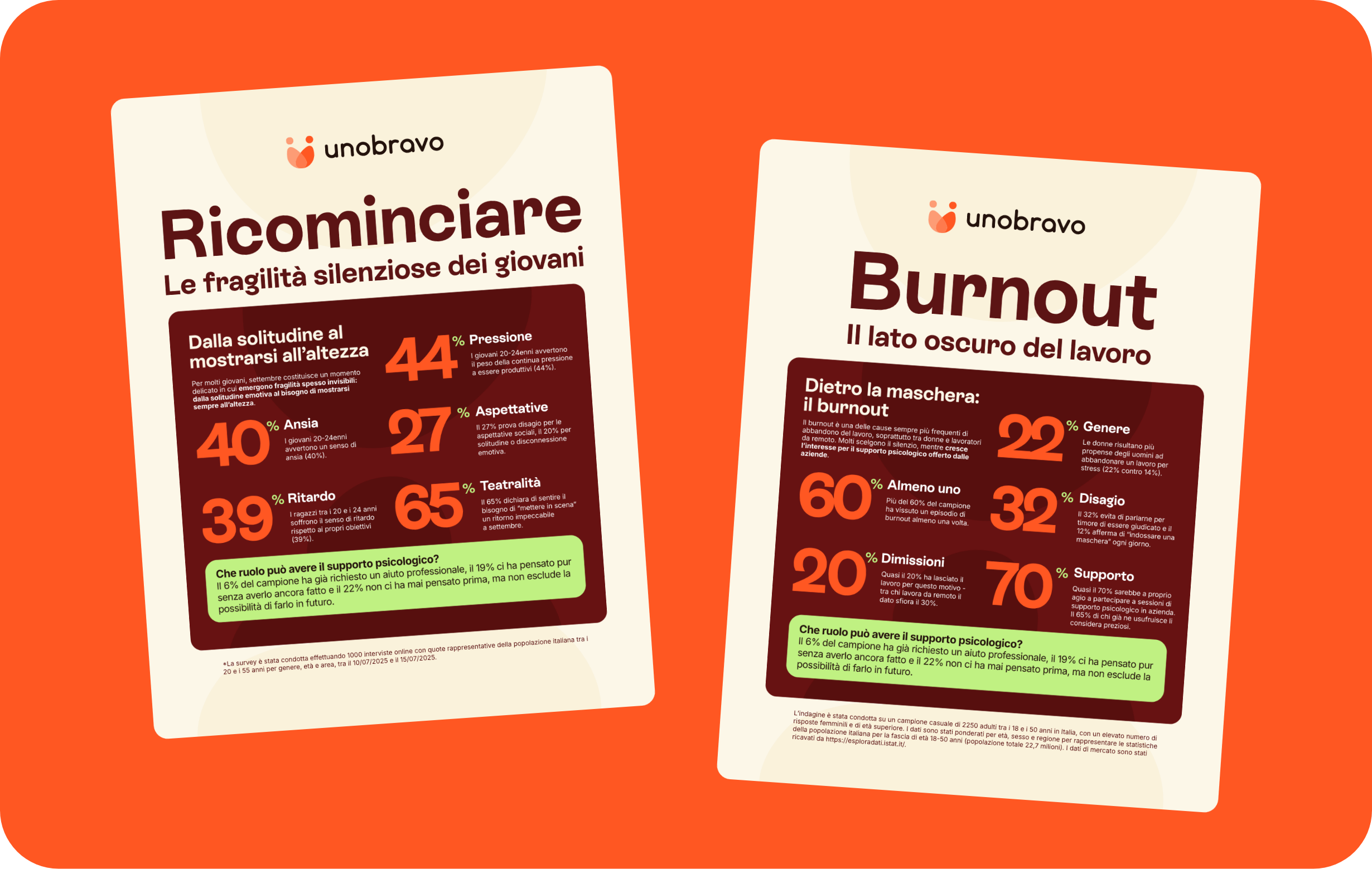 Le infografiche, infatti, sono state adattate per i canali social di Uno Bravo, così da estendere la stessa coerenza visiva anche nella comunicazione esterna.